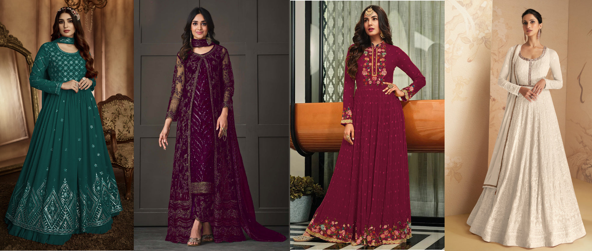 Embroidered Party Wear Semi Stitched Flaired Anarkali Gown For Women