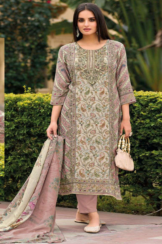 Floral Organza Fabric Digital Printed With Embroidery Semi Stitched Pakistani Salwar Suit For Women