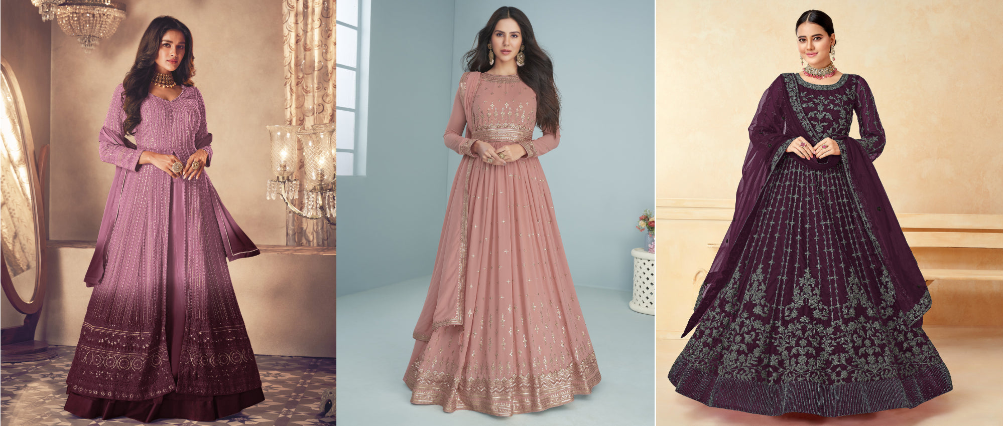 Embroidered Party Wear Semi Stitched Flaired Anarkali Gown For Women