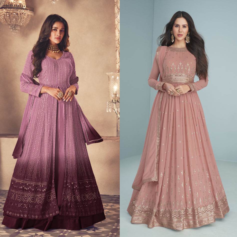 Georgette Anarkali palazzo Suit With Embroidery And Sequins Party Wear