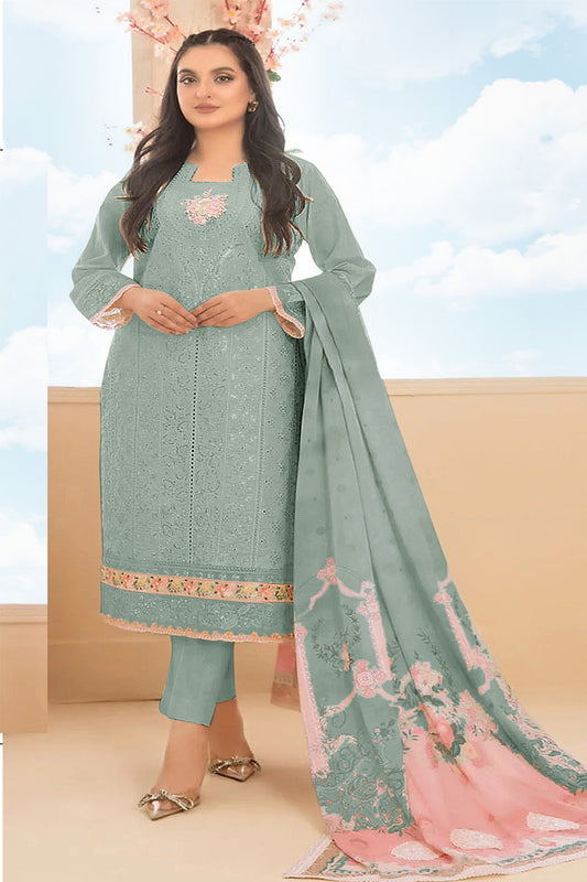 Organza Embroidered Semi Stitched Salwar Suit Set With Dupatta