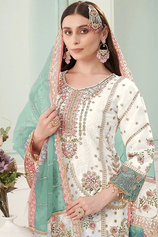 Georgette Embroidered Sharara Salwar Suit With Dupatta For Women