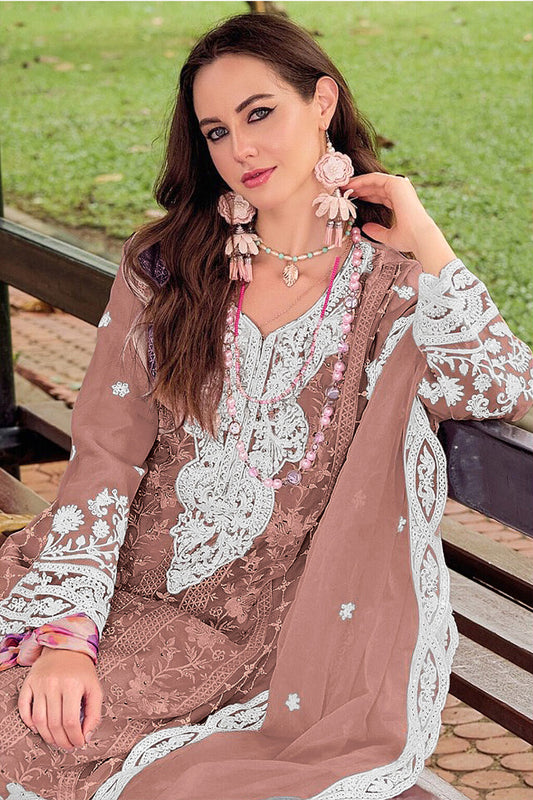 Organza Heavy Embroidered Semi Stitched Party Wear Suit For Women