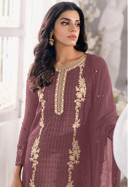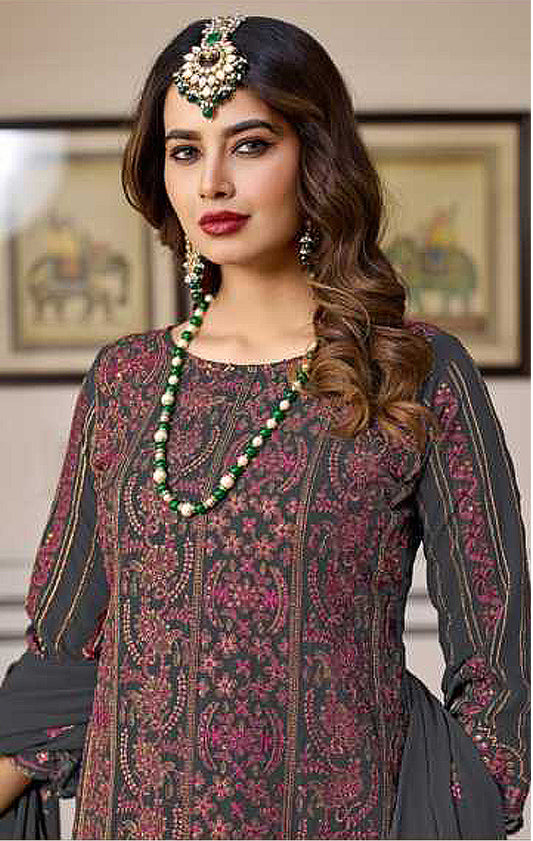 Floral Design Embroidered Pakistani Suit With Dupatta