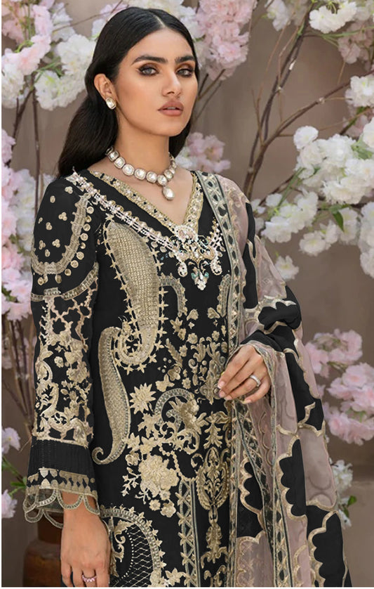 Georgette Embroidered Semi Stitched Salwar Suit With Dupatta For Women