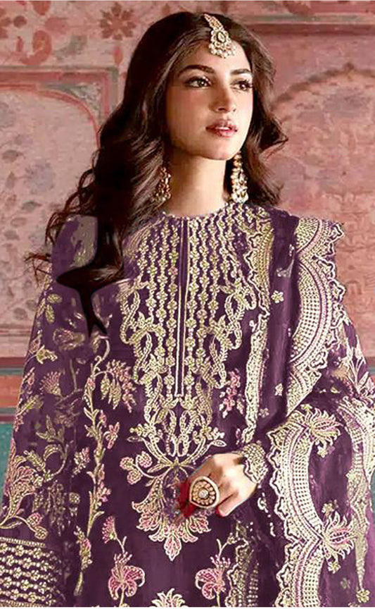 Organza Embroidered Semi Stitched Salwar Suit Set With Dupatta