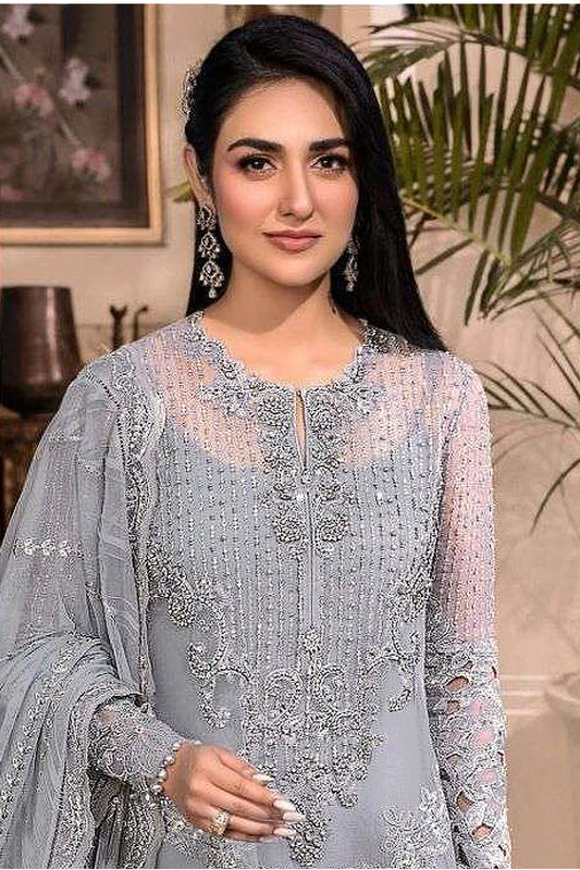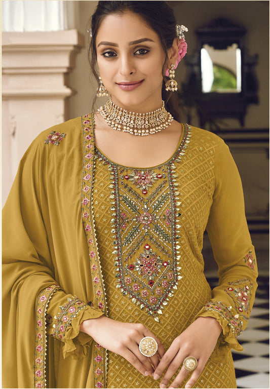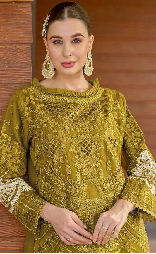 Heavy Embroidery Work Semi Stitched Chinon Fabric Pakistani Suit With Dupatta For Women