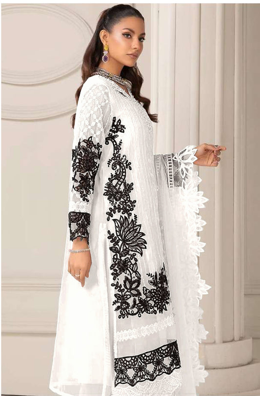 Georgette Embroidered Semi Stitched Salwar Suit Set For Women