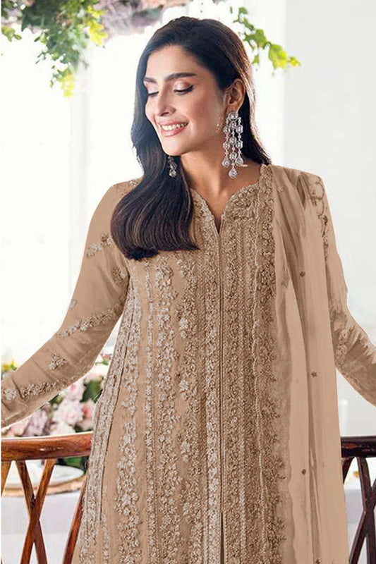 RUDRAPRAYAG Women's Straight Long Salwar Suit With Georgette Fabric With Embroidered Sequence Work With Dupatta