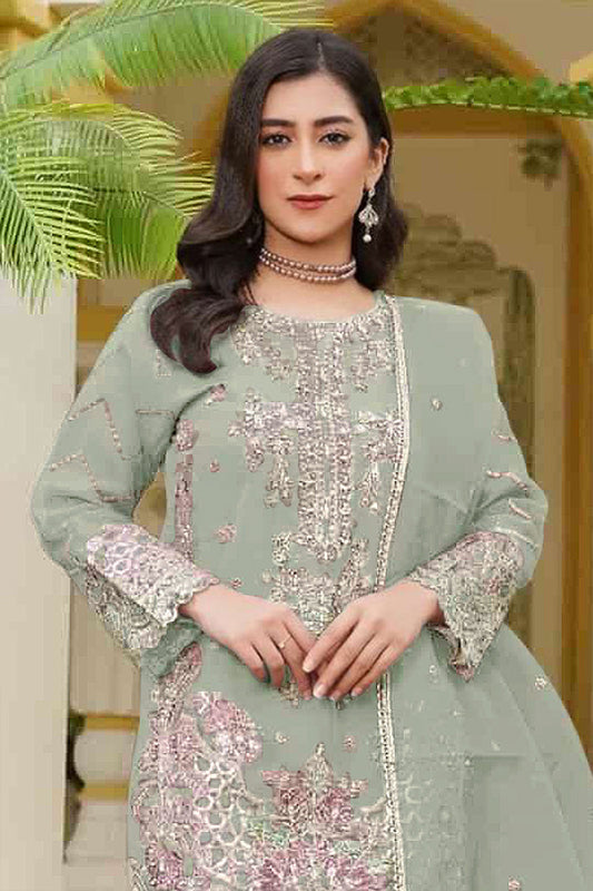 RUDRAPRAYAG Faux Georgette Fabric With Heavy Embroidered Sequence Work Semi Stitched Salwar Suit With Dupatta For Women