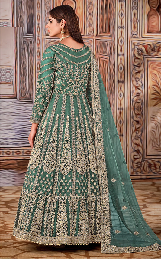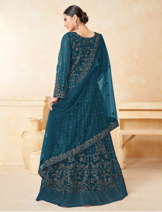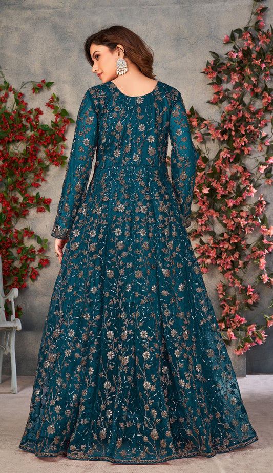 Women's Net and Santoon Embroidred Flair Anarkali Suits For Party Wear