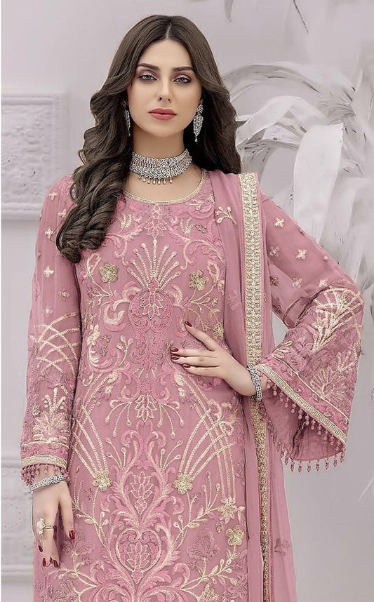 Georgette 2 Tone Thread Embroidery Work Semi Stitched Pakistani Salwar Suit Set With Dupatta