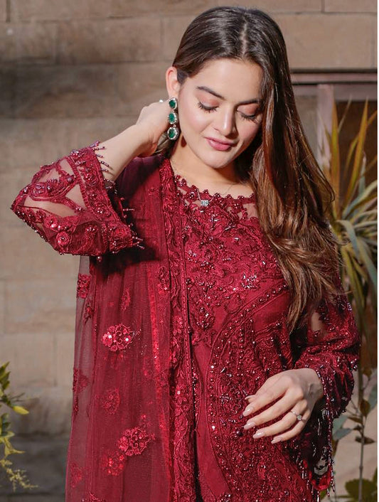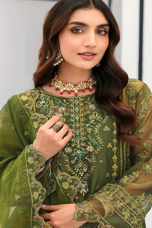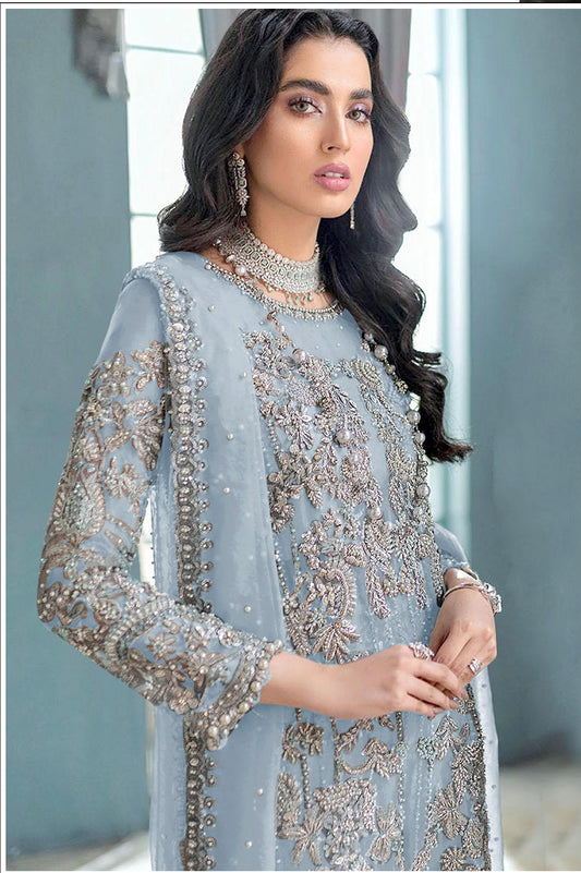 Organza Heavy Embroidered Semi Stitched Party Wear Suit For Women
