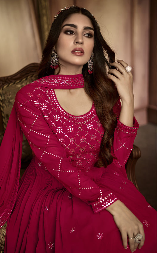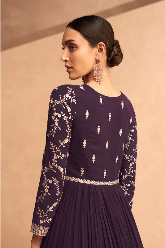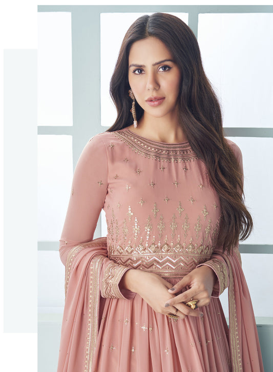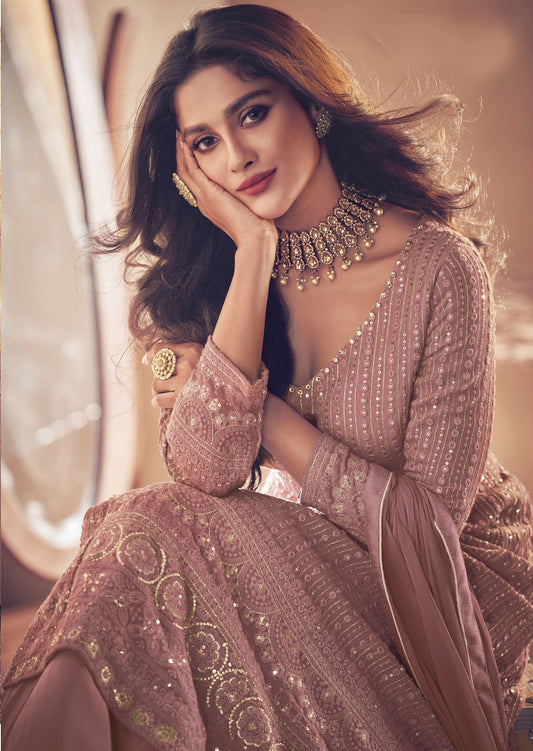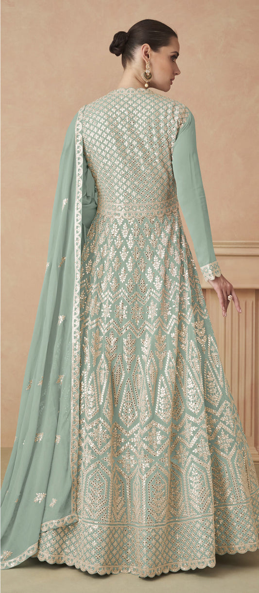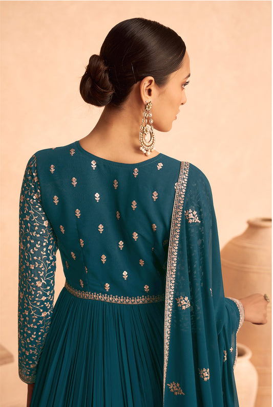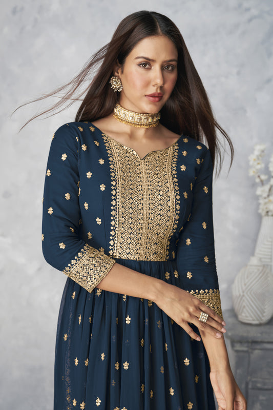 Georgette Anarkali palazzo Suit With Embroidery And Sequins Party Wear