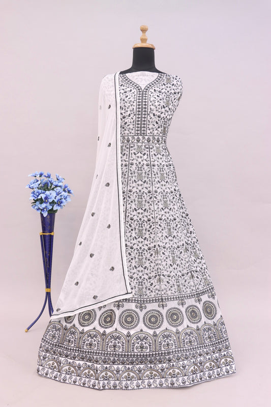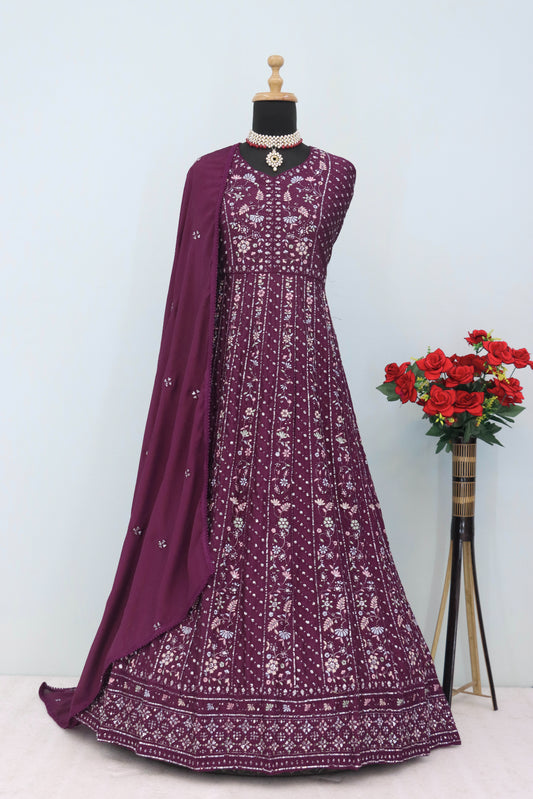 Faux Georgette Flair Embroidered Semi Stich Anarakli Gown With Dupatta