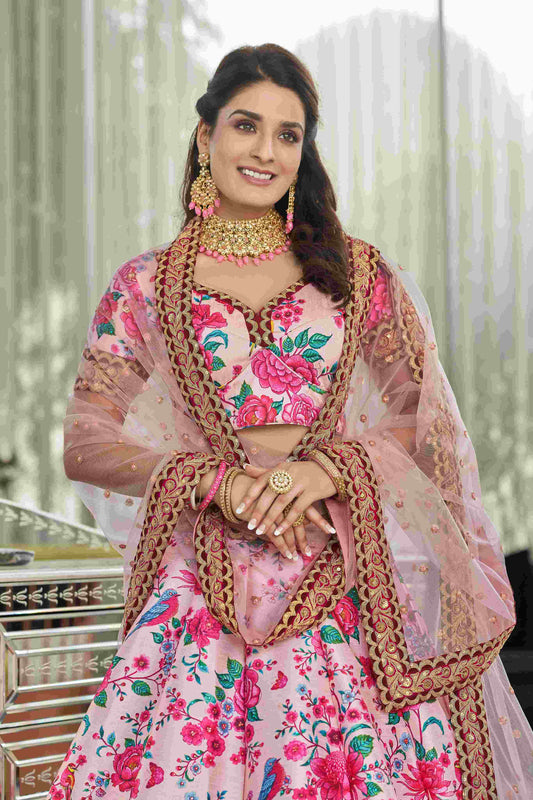 Digital Print With Embroidery Work Lahenga Choli For Women
