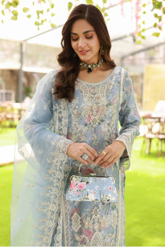 Floral Organza Fabric Digital Printed With Embroidery Semi Stitched Pakistani Salwar Suit For Women